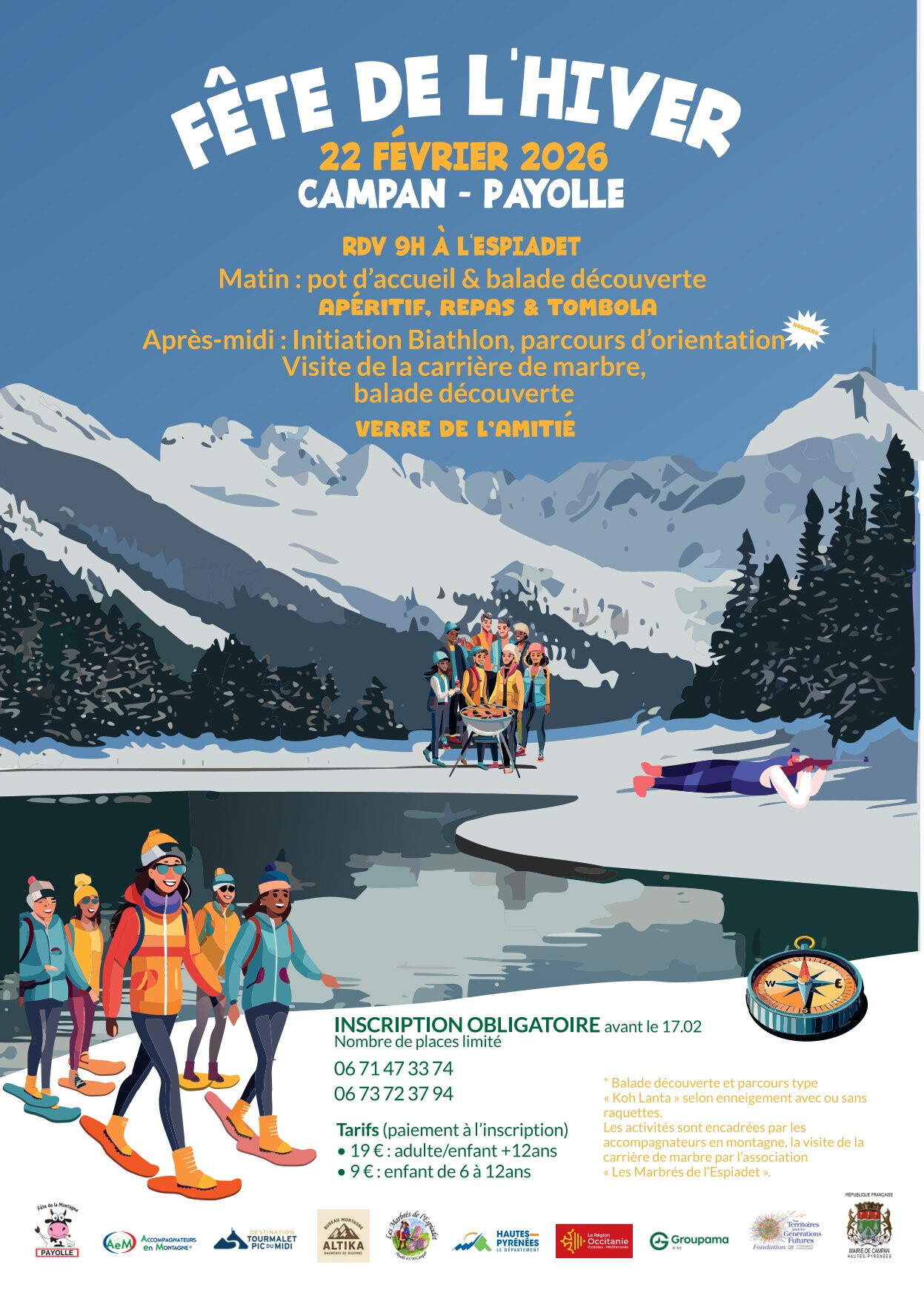 Dès 9h à l’Espiadet, profitez d’un pot d’accueil suivi d’une balade découverte pour bien démarrer la journée. Au programme : apéritif, repas convivial et tombola pour tous ! L’après-midi, initiez-vous au biathlon, testez votre sens de l’orientation, partez à la découverte de la carrière de marbre et partagez un verre de l’amitié dans une ambiance chaleureuse.