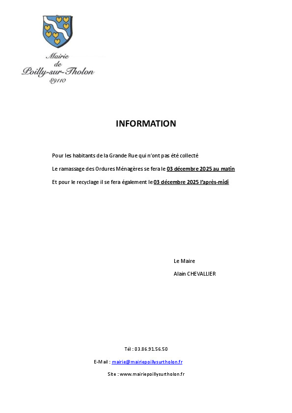 INFORMATION IMPORTANTE POUR LA GRANDE RUE