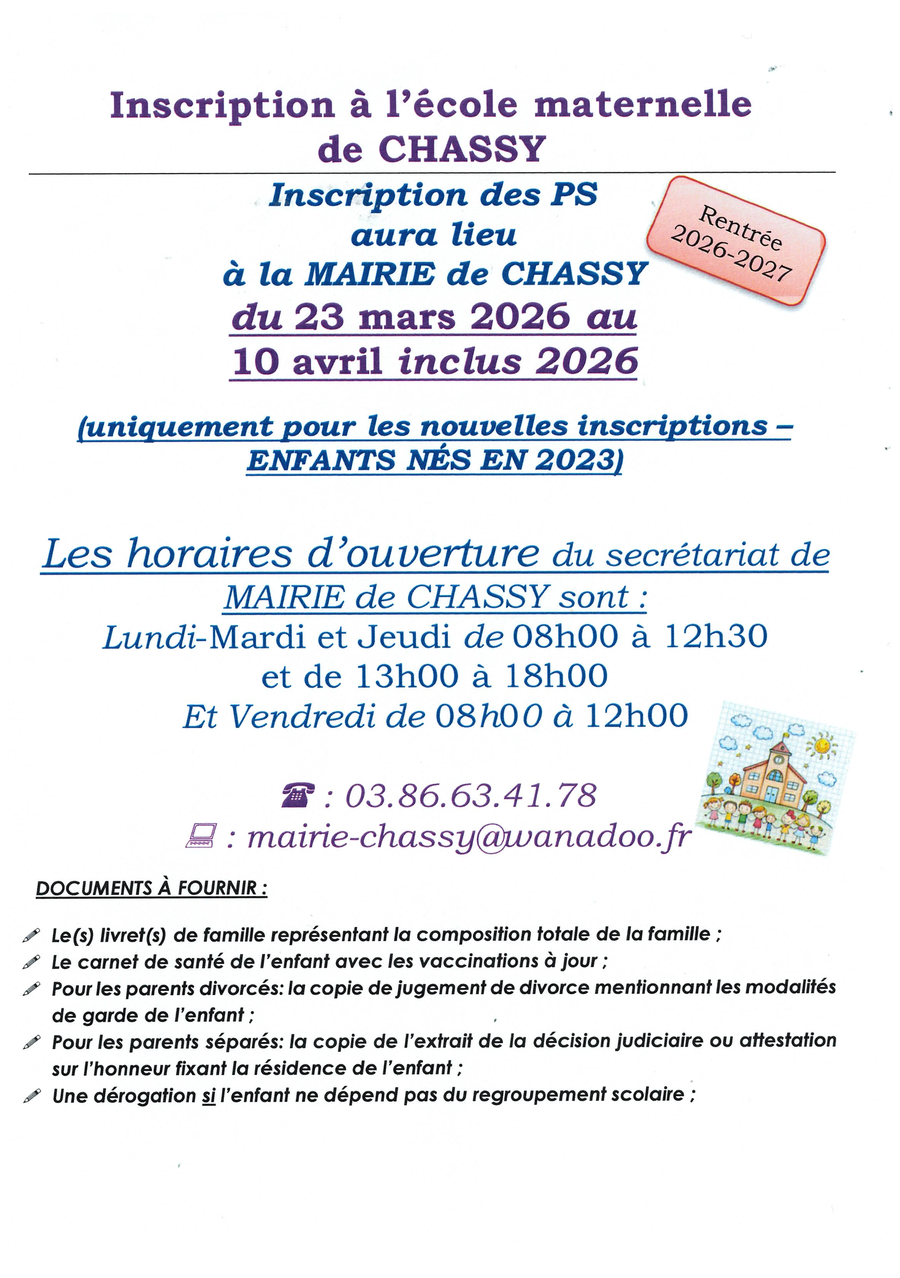 INSCRIPTION SCOLAIRE POUR LES ENFANTS DE 2023
