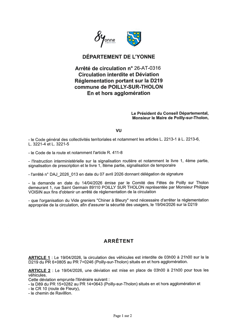 Une déviation sera mise en place sur la D219 pour la journée du 19/04/2026