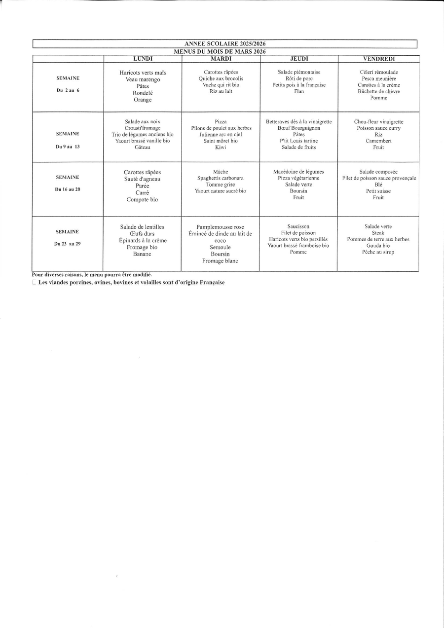 MENUS MARS 2026