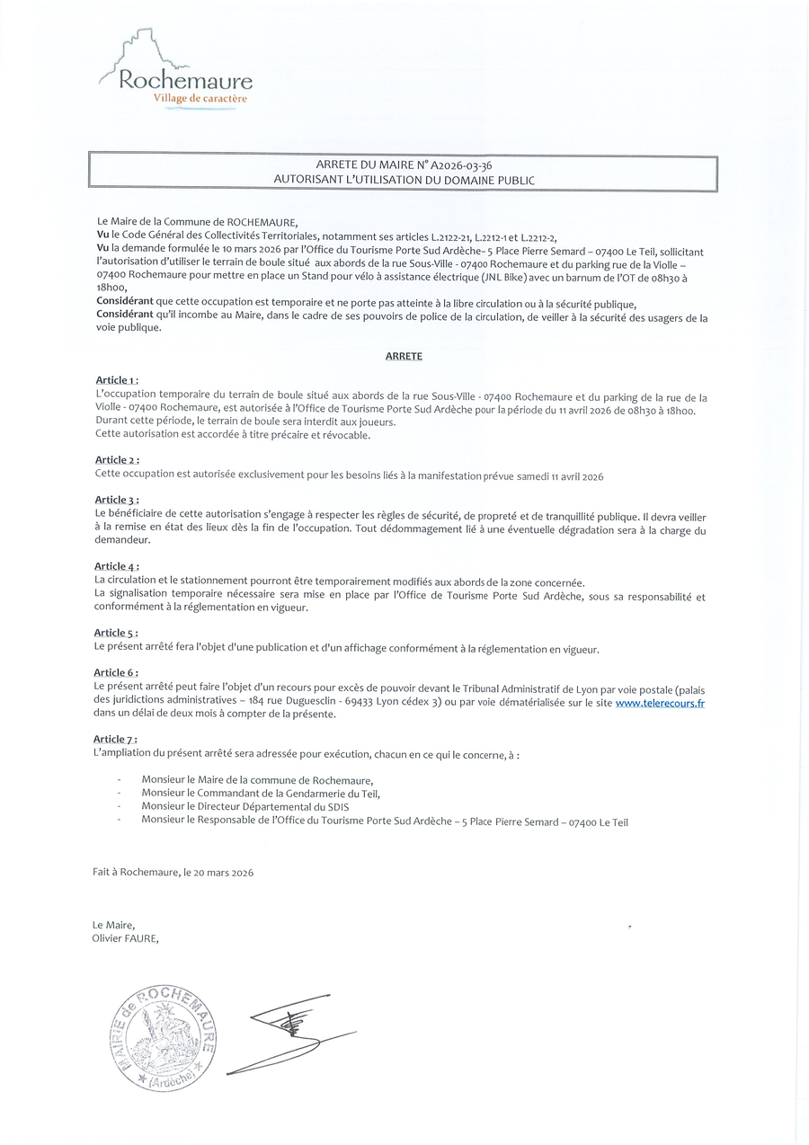 Arrêté du Maire : Terrain pétanque rue sous ville