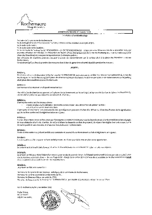 Arrêté du Maire:échafaudage Faubourg/Pl.Brassière