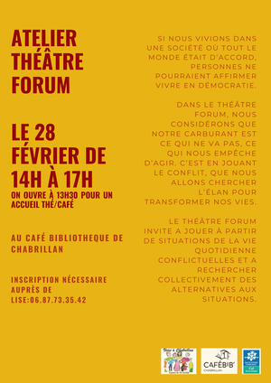 Atelier participatif pour + de 10 ans animé par Lise, sur inscription au 06.87.73.35.42.