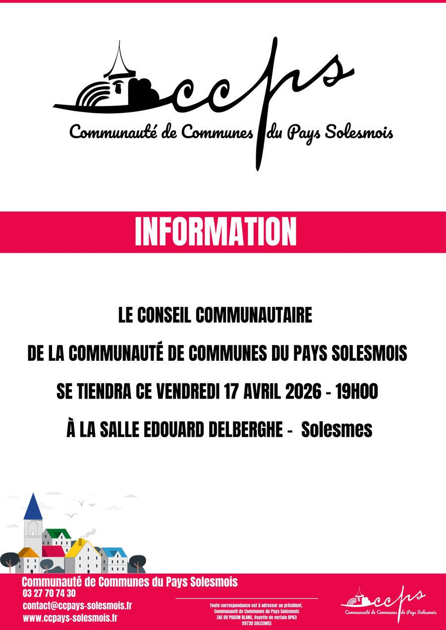 N’hésitez pas à vous tenir informés ! #PaysSolesmois #ConseilCommunautaire #VieLocale