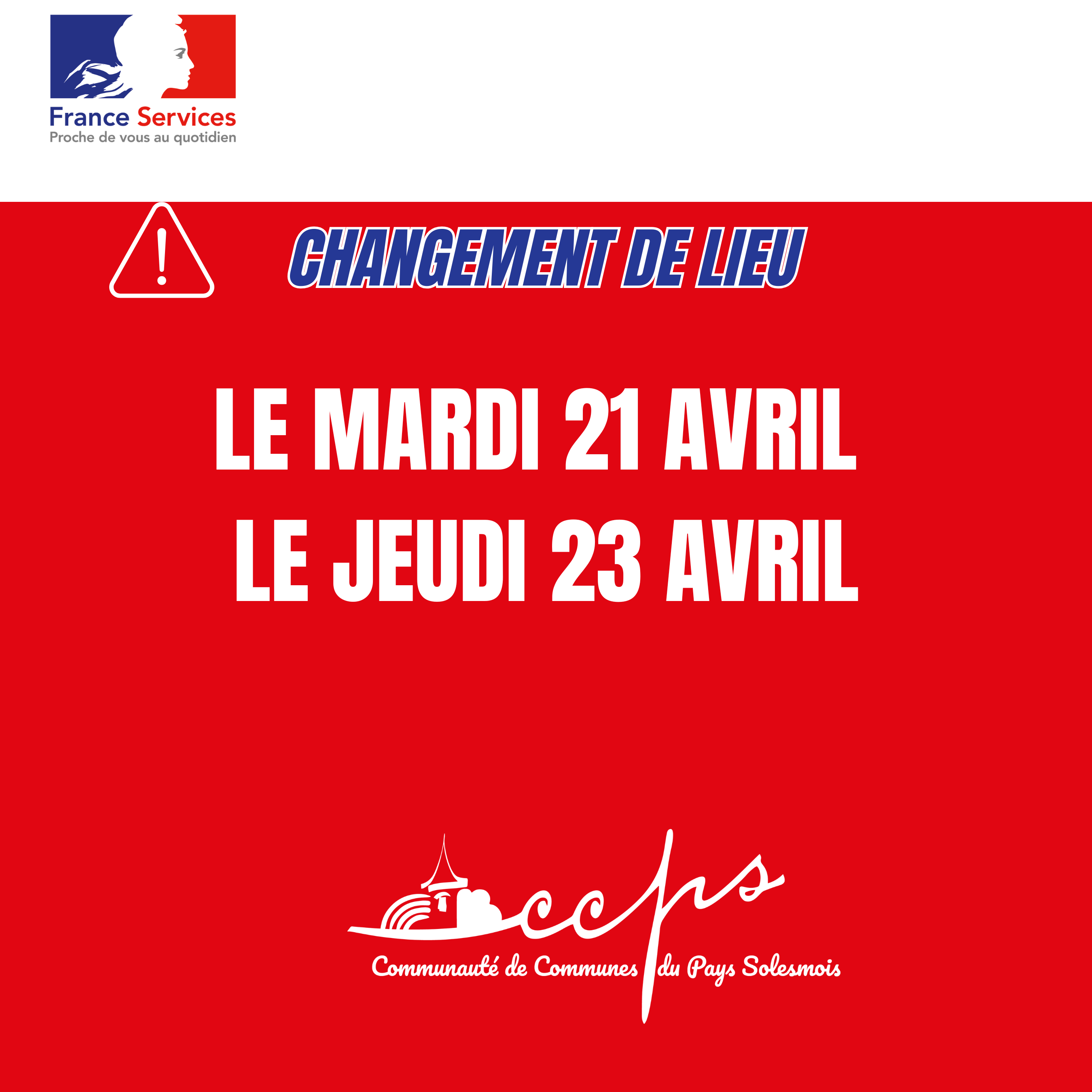 đ Les permanences des mardi 21 avril & jeudi 23 avril changent de lieu đ đ Retrouvez-nous au bâtiment de lâĂtape (juste en face du collège St ExupĂŠry de Solesmes) đ Besoin dâun renseignement ou dâun rendez-vous ? Pensez Ă appeler nos conseillers au 03 27 70 74 30 â ď¸ Petit rappel : câest le seul numĂŠro pour nous joindre đ Ă très vite ! đ