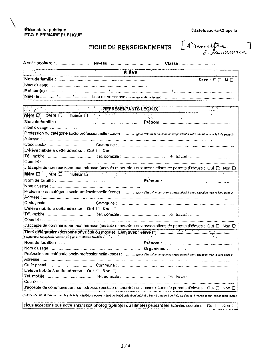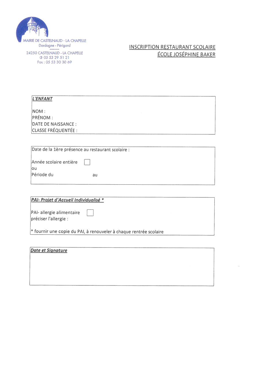 2nd temps : démarche à l’école Joséphine Baker par téléphone : 05 53 29 54 17