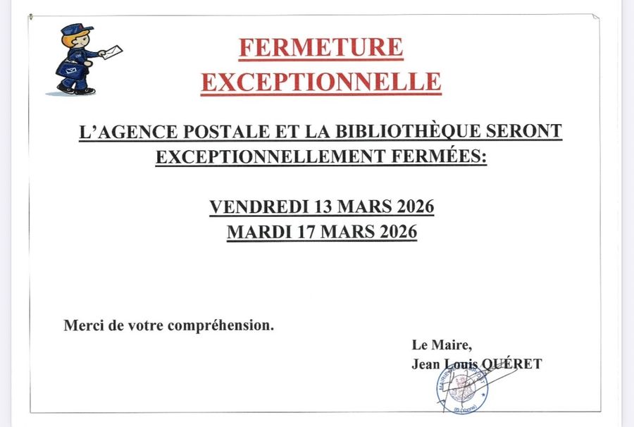 FERMETURE EXCEPTIONNELLE AGENCE POSTALE