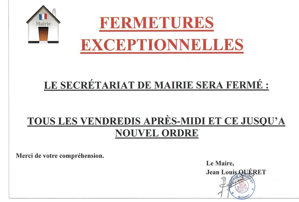 FERMETURES EXCEPTIONNELLES DU SECRÉTARIAT