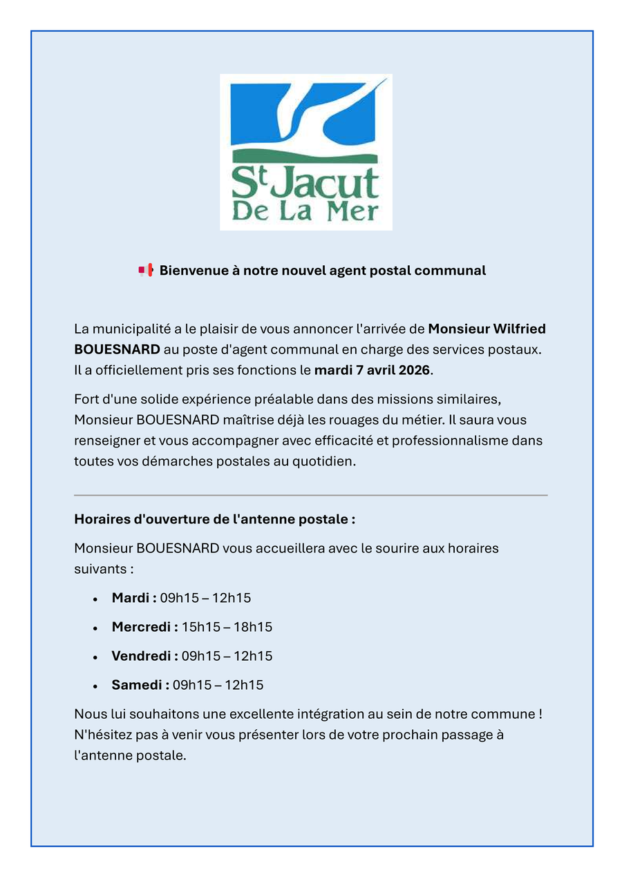 Arrivée du nouvel agent pour l’antenne postale