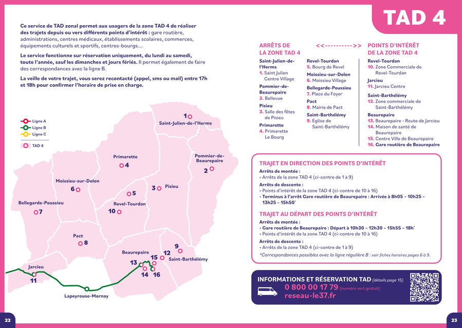 Le service de Transport À la Demande (TAD) zonal assure la couverture de notre commune (zone TAD4).