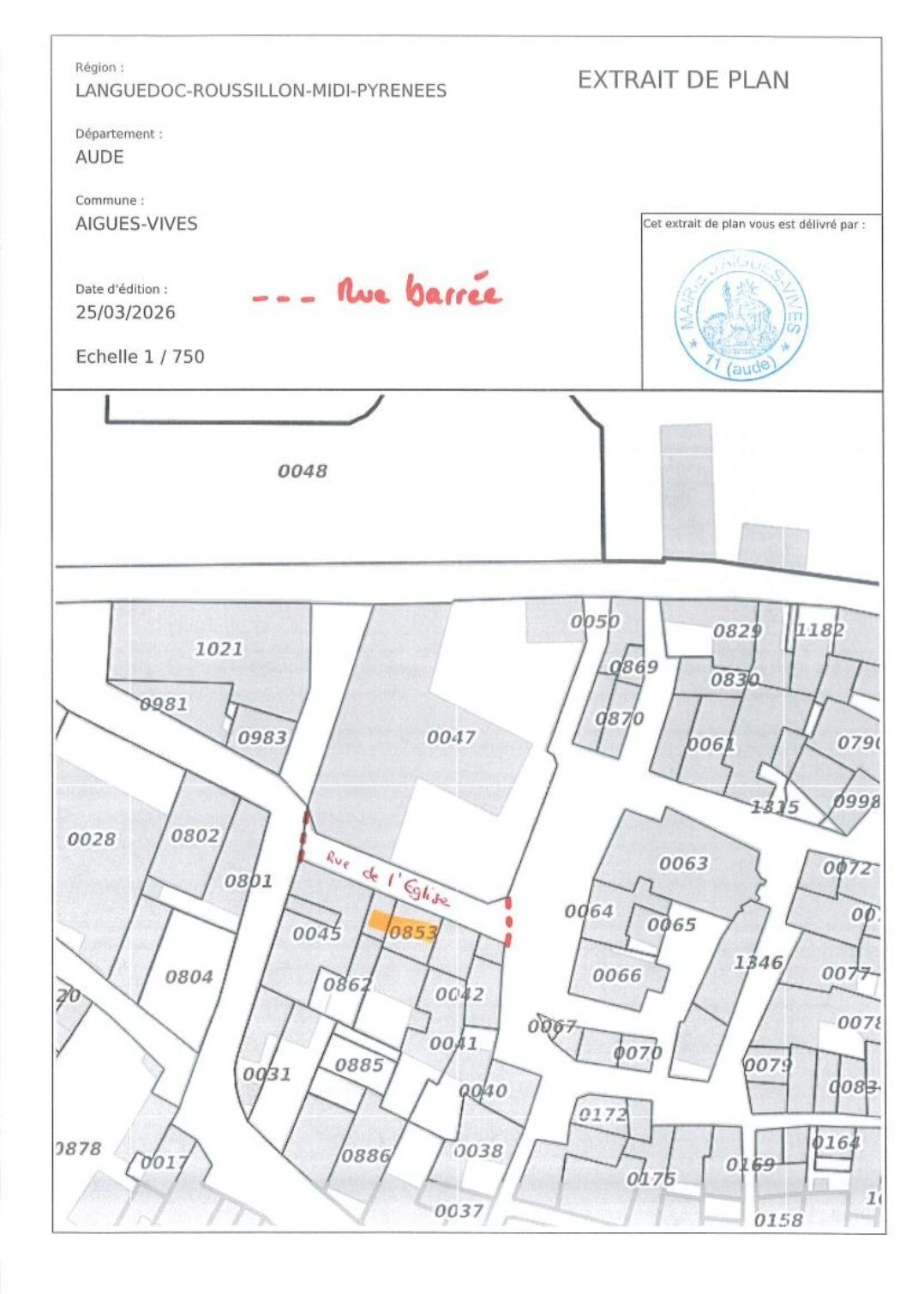 De ce fait, la rue de l'Eglise sera barrée à la circulation et interdite au stationnement pendant toute la période des travaux du lundi au vendredi de 8h à 16h comme indiqué sur le plan annexé au présent arrêté.