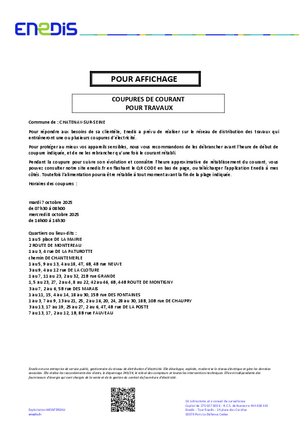 COUPURE DE COURANT POUR TRAVAUX