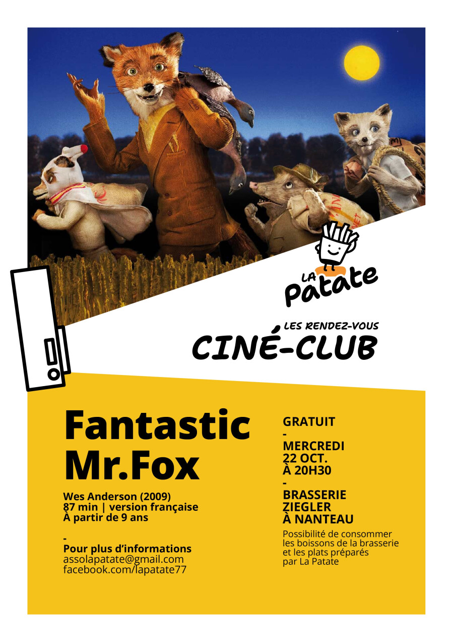 Nous projetterons📽️ “The Fantastic mister Fox”🦊 , un film familial 🧑🧑🧒🧒 (à partir de 9ans) réalisé par Wes Anderson (Darjeeling limited, The grand Budapest Hotel).