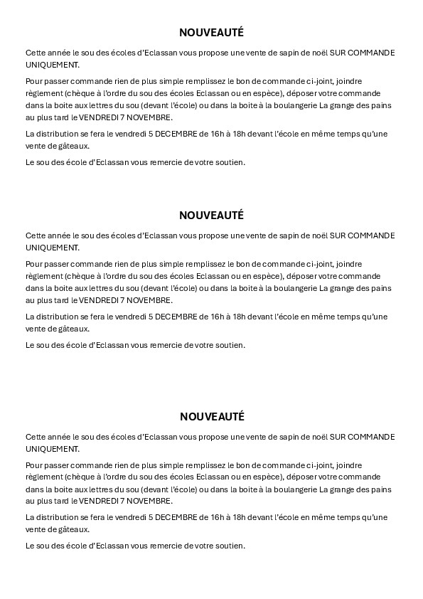 Vente de sapin de Noël par le Sou des Écoles SUR COMMANDE avant le 7 Novembre.