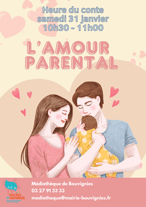 À la médiathèque municipale, le samedi 31 janvier, de 10h30 à 11h, l'heure du conte sera dédiée au lien d'amour qui unit les parents à leurs enfants.