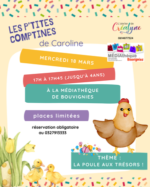 En 2026, la médiathèque vous propose une nouvelle animation mensuelle pour les tout-petits : Les P'tites comptines de Caroline.