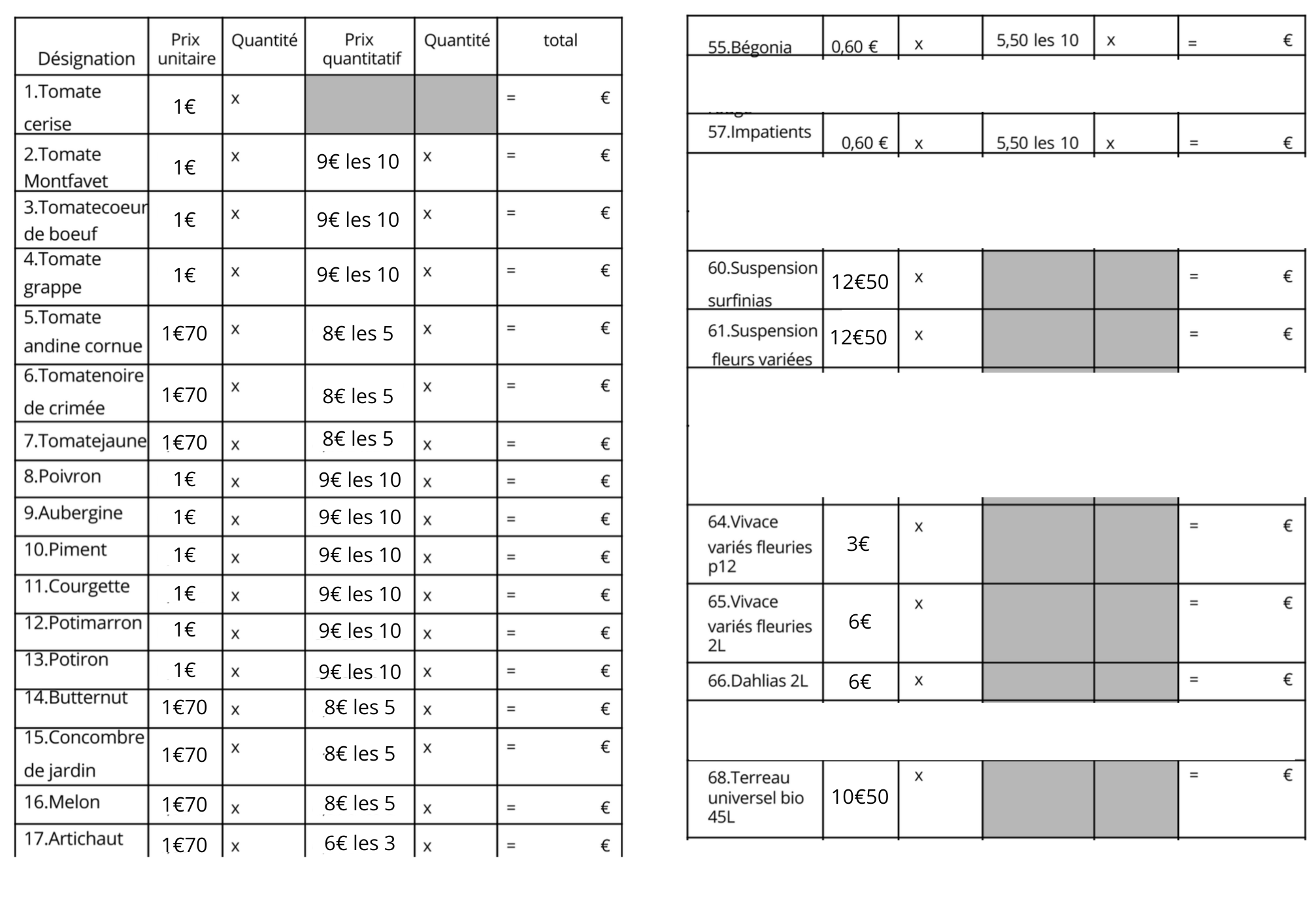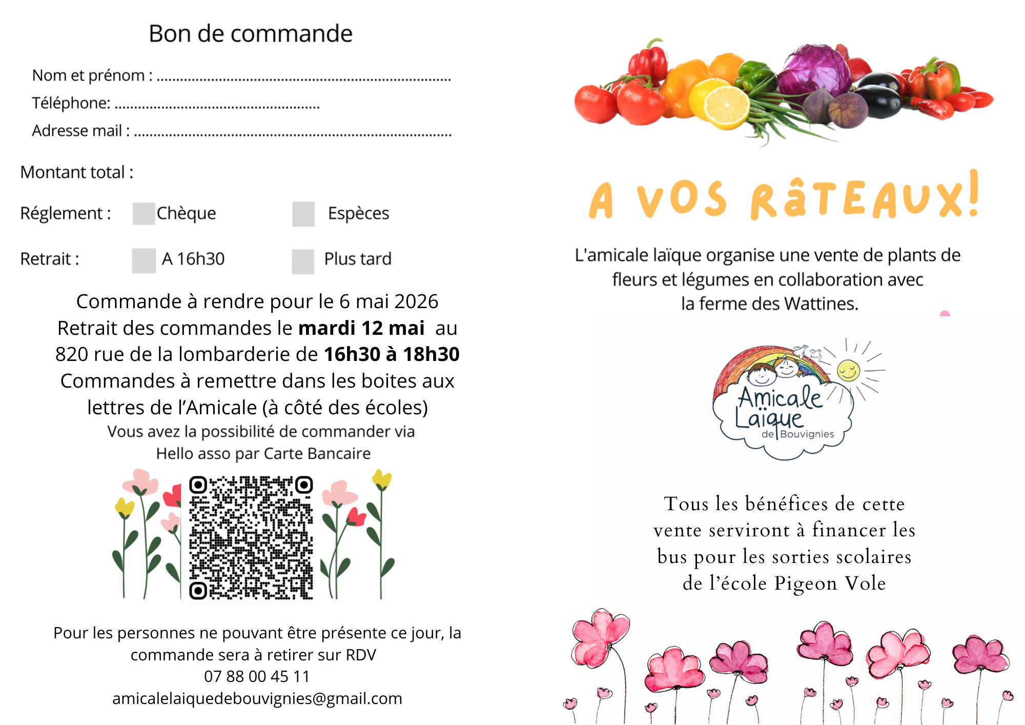 Cette année encore l'amicale laïque lance une vente de plants de légumes et fleurs ouverte à tous.