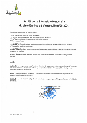 En raison de l’effondrement du talus et de la clôture sur la route située en contrebas, provoqué par d’importants ruissellements et des pluies persistantes, le cimetière est temporairement fermé au public jusqu’à nouvel ordre.
