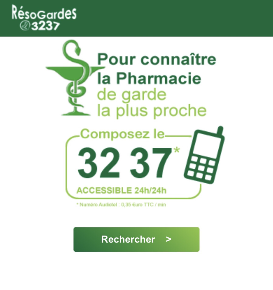 Mais en suivant ce lien https://www.3237.fr/public/mobi/index.php, vous trouverez la pharmacie de garde sans payer.