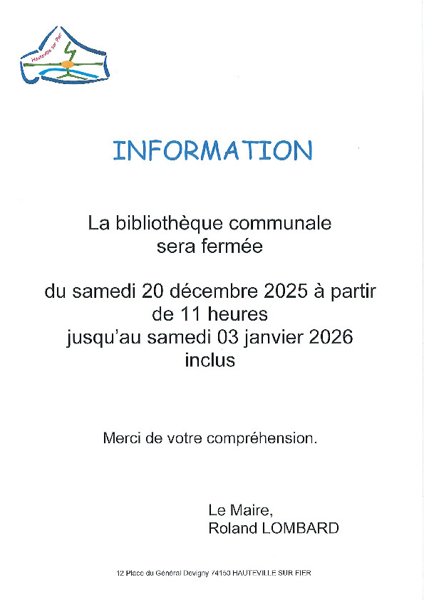 FERMETURE BIBLIOTHEQUE