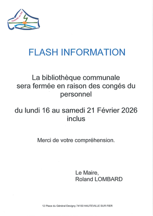 FERMETURE DE LA BIBLIOTHEQUE