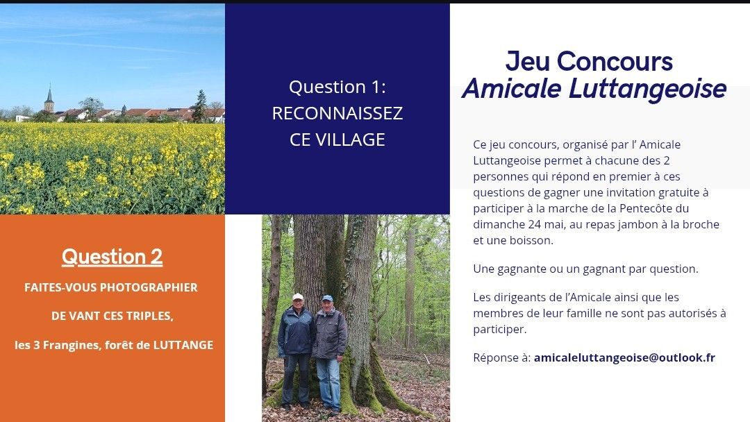Nous vous invitons à prendre connaissance du jeu concours organisé par l’amicale luttangeoise.