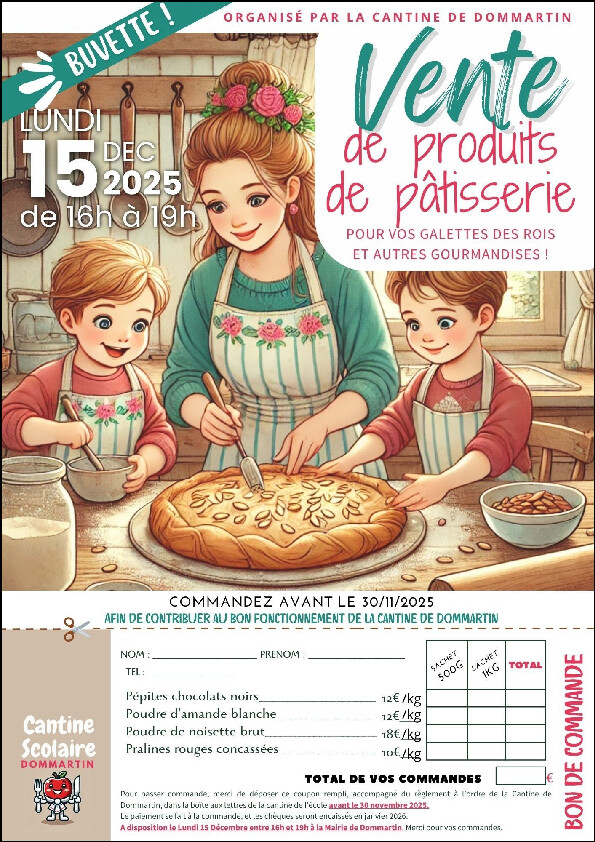 Afin que la cantine scolaire de Dommartin puisse toujours proposer un repas aux enfants à un prix raisonnable avec des produits locaux et sains ; nous comptons sur la participation de chacun pour cette vente.
