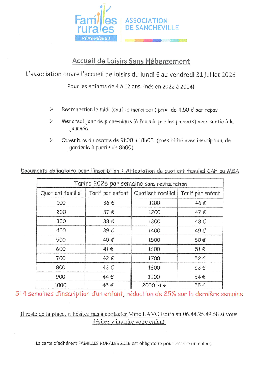 ACCUEIL LOISIR SANCHEVILLE JUILLET 2026