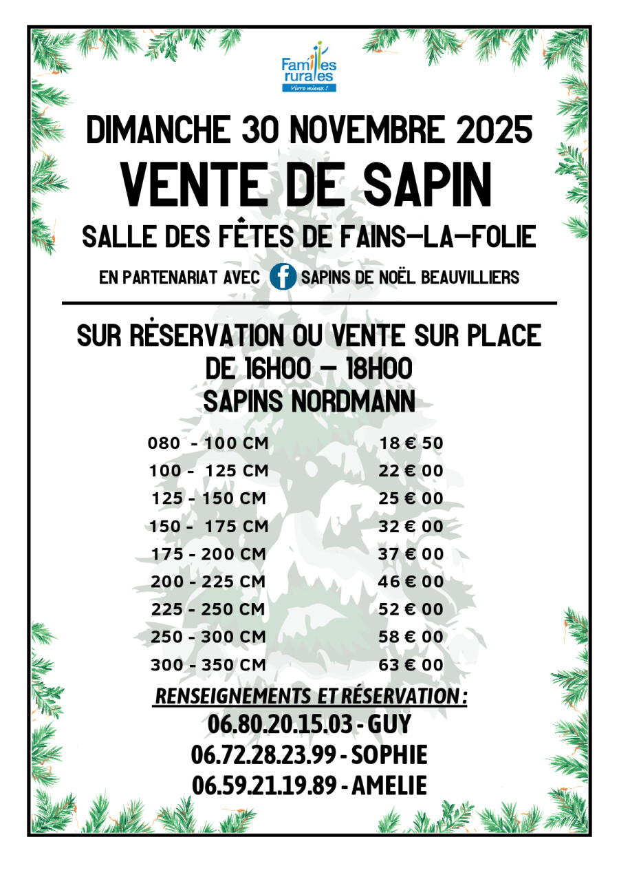 VENTE DE SAPINS A FAINS LA FOLIE LE 30 NOVEMBRE