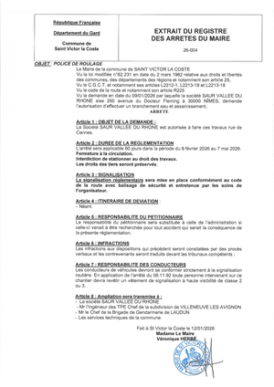 Règlementation de la circulation par Arrêté N° 26-004.