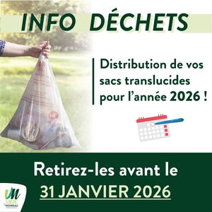 Plus que quelques jours pour retirer vos sacs translucides d'ordures ménagères (non recyclables) pour l’année 2026.