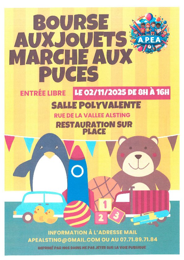 APEA - Bourse aux jouets/marché aux puces 🧸