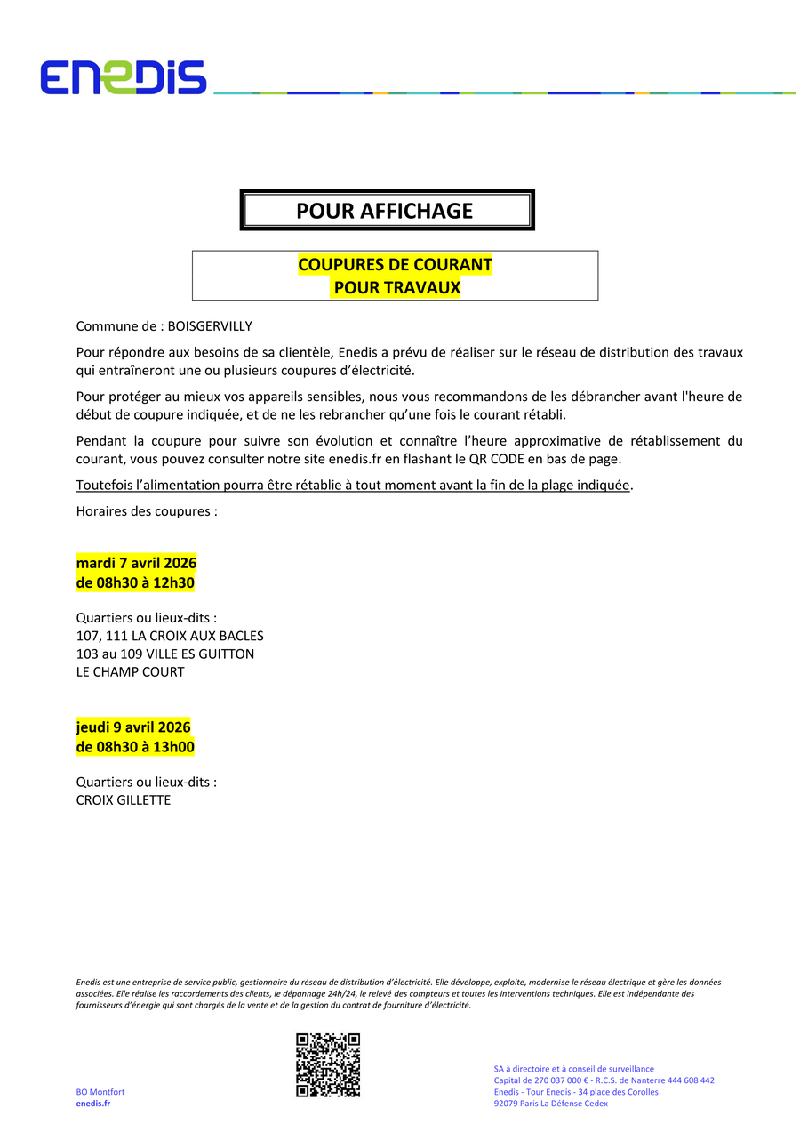 COUPURE DE COURANT - 07/04 et 09/04