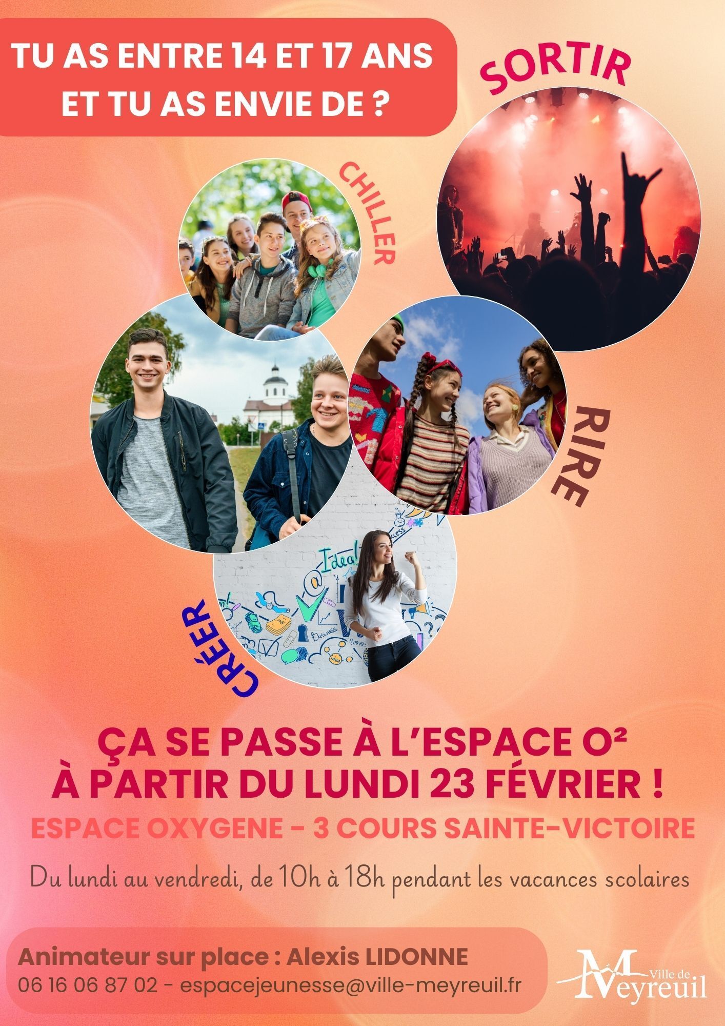 Animateur sur place : Alexis Lidonne, présent pour toute information et inscription (06 16 06 87 02 / espacejeunesse@ville-meyreuil.fr).