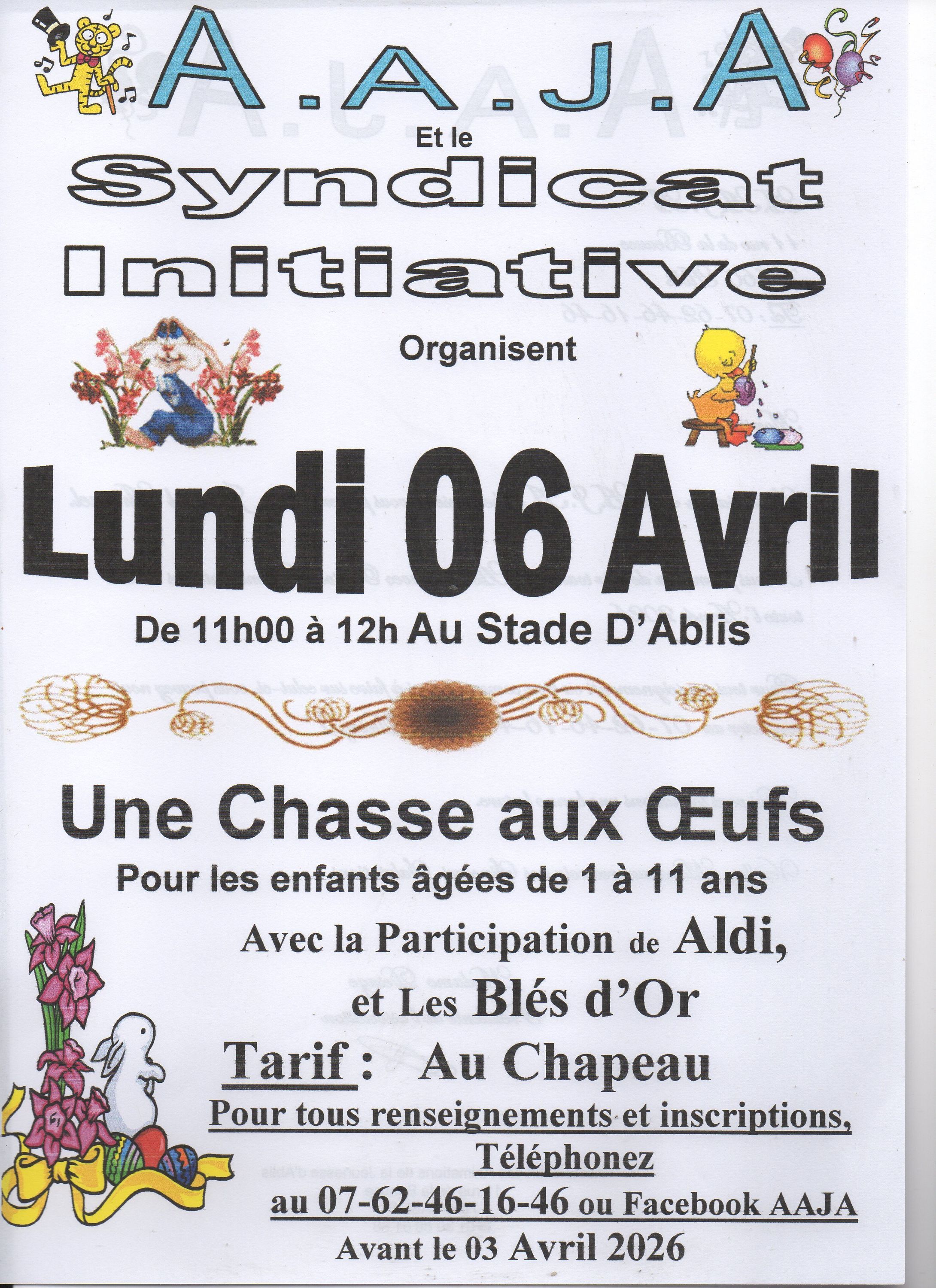 Inscription par Email ou Facebook ou par téléphone au 07 62 46 16 46