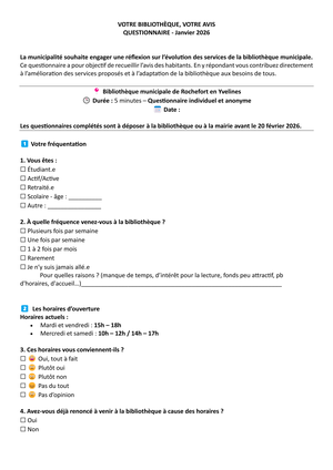 Les questionnaires complétés sont à déposer à la bibliothèque ou à la mairie avant le 20 février 2026.