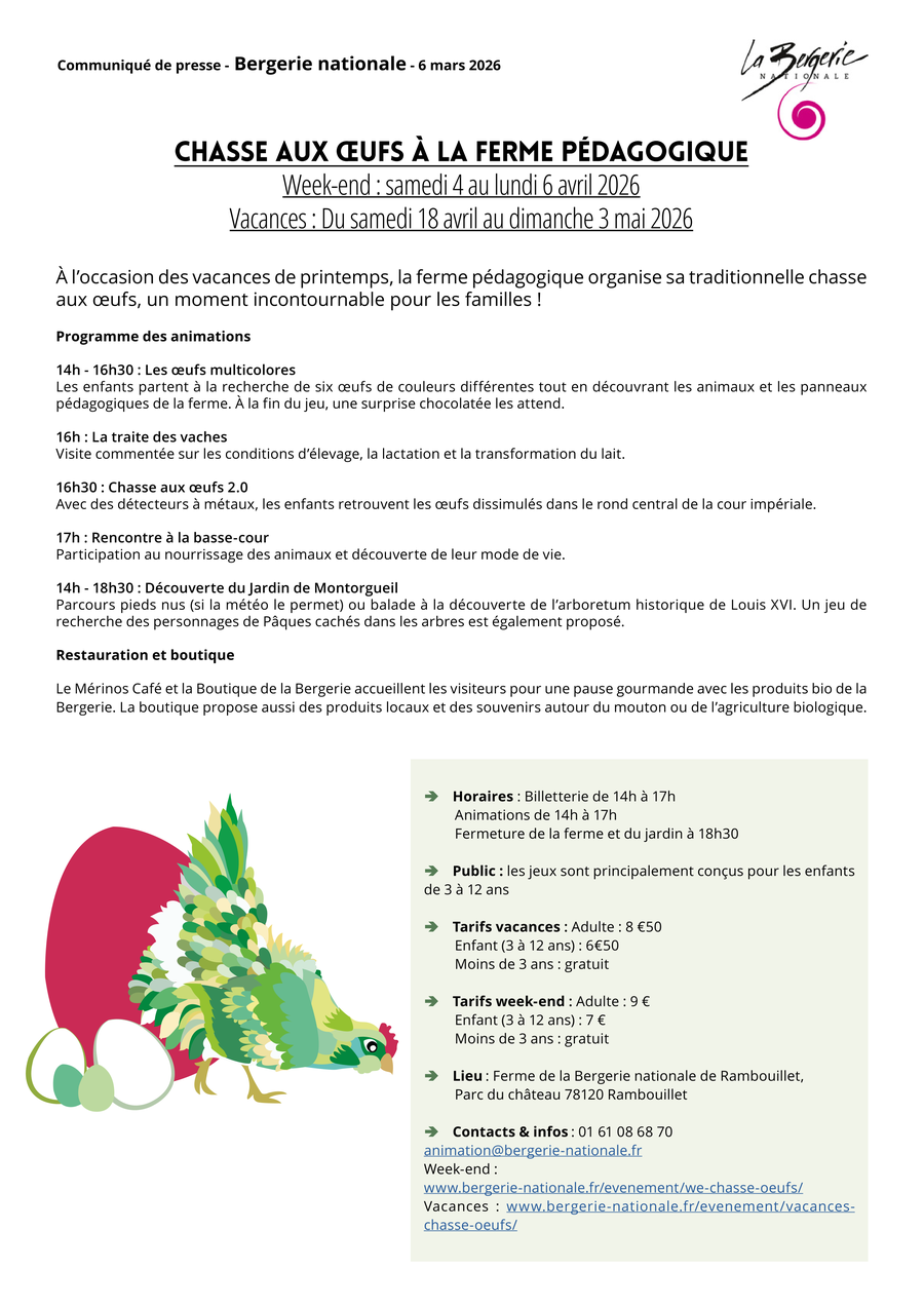 À l’occasion du week-end de pâques et des vacances de printemps, la Bergerie nationale organise sa traditionnelle chasse aux œufs.