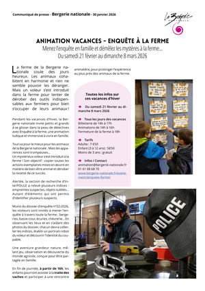 Pour les vacances de février, l’animation : «Enquête à la ferme», revient à la Bergerie nationale du 21 février au 8 mars 2026!