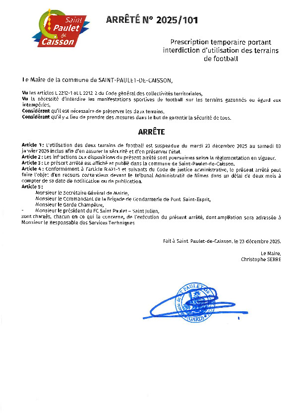 Arrêté n° 2025/101