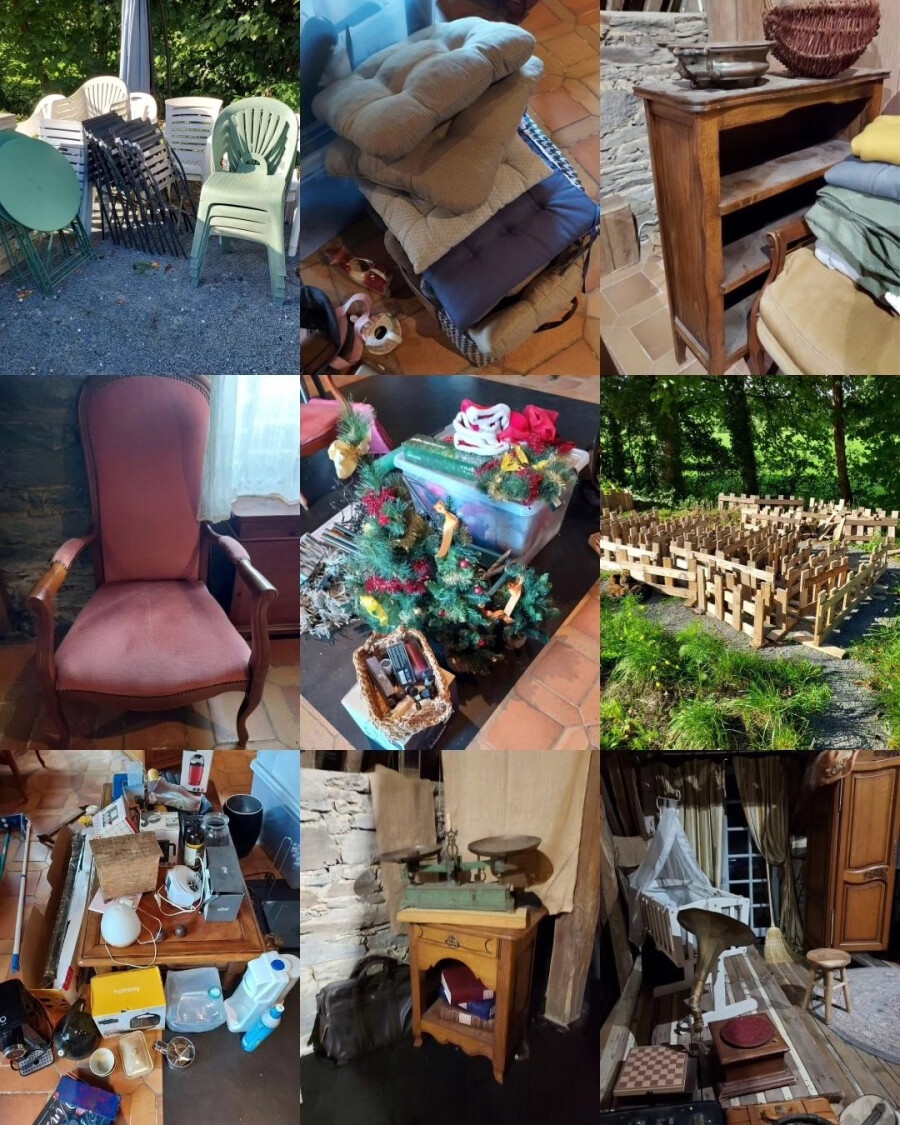 Vous trouverez votre bonheur parmi les objets et meubles du Théâtre du Grenier, les salons de jardin, bancs, barrières, plantes et plein d'autres choses !