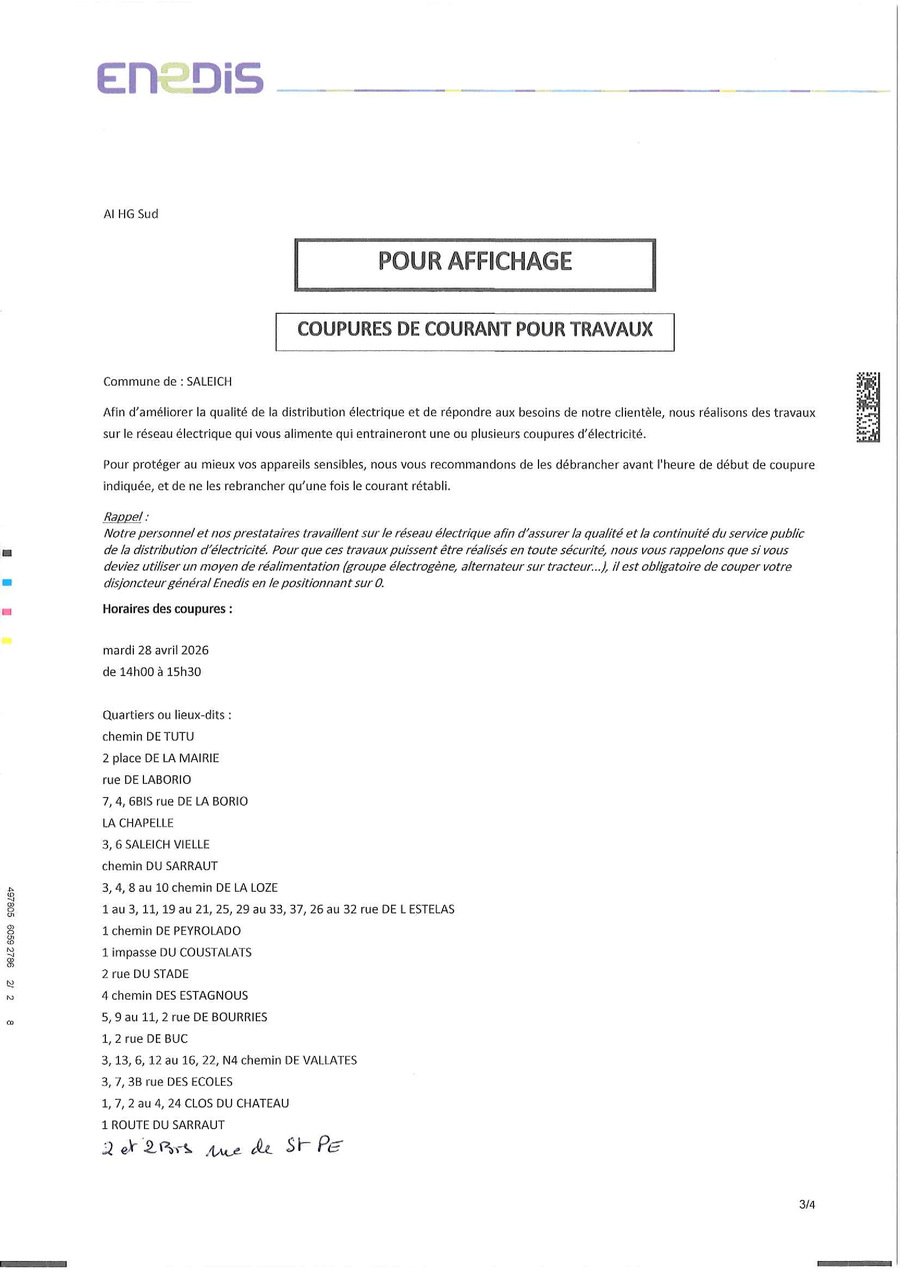 Coupure de courant le 28 AVRIL 2026