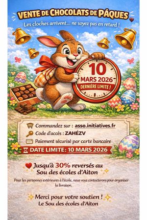 Le Sou des Ă©coles dâAiton organise une vente de chocolats.