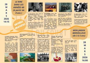 Une sélection de courts métrages sera proposée aux 3-5 ans dans le cadre du programme Mon Jardin merveilleux, ainsi qu'aux enfants dès 8 ans et aux adultes avec le programme de courts métrages Le Rire dans les années 60.