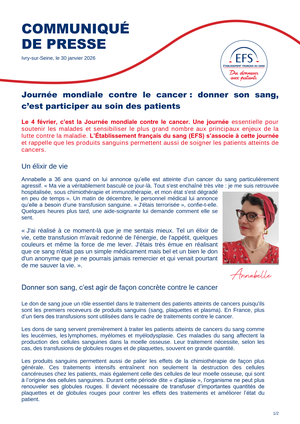 Journée mondiale contre le cancer : donner son sang, c’est participer au soin des patients