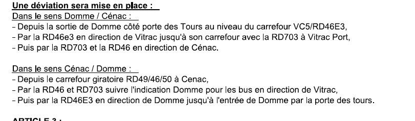 Nous vous informons que pour permettre la réalisation de travaux d’élagage dans le cadre du passage du Tour de France, le Département va fermer la route départementale 49 (de Cénac à Domme, Côté Porte Del Bos) à la circulation