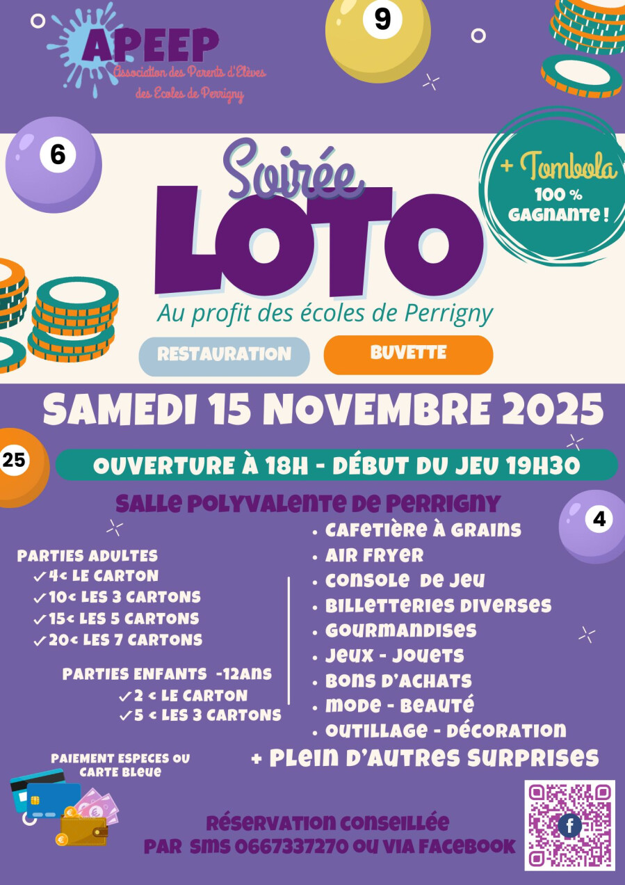 L'APEEP organise un loto au profit des écoles de Perrigny.
