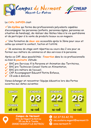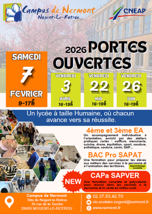 Nous avons le plaisir de vous informer que le Campus de Nermont organisera ses Portes Ouvertes aux dates suivantes :