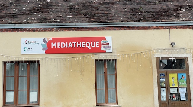 😊Le Père Noel 🎅 est passé à la médiathèque et nous a apporté une magnifique nouvelle enseigne bien visible aux couleurs de Sablons sur Huisne !