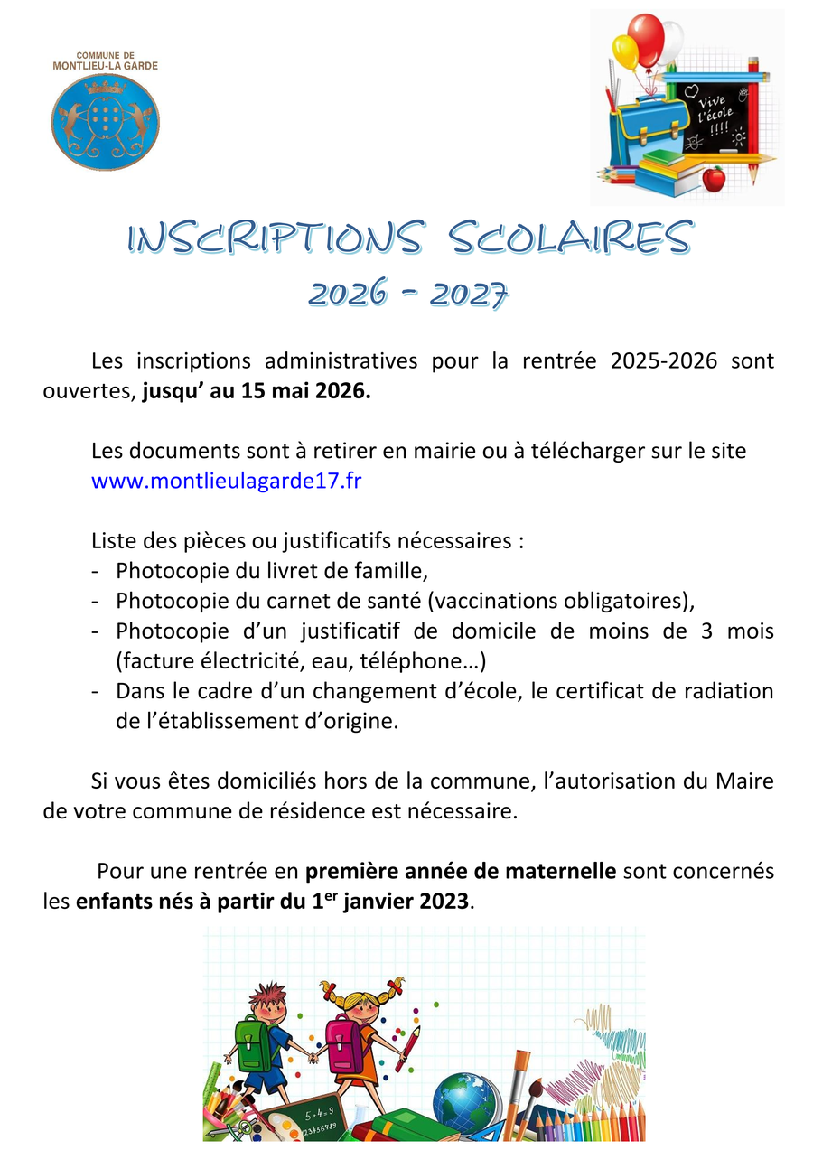 Les inscriptions scolaires pour la rentrée 2026-2027, sont ouvertes.